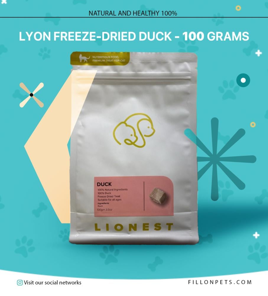 MADE FROM 100% FRESH MEAT ~ High Protein , 100G Freeze Dried meat = 500G Fresh Meat ~ Totally Grain-free ~ NO PRESERVATIVES, ADDITIVES, COLORANT, STARCHES, ATTRACTANTS ~ Does not require refrigeration ~ Every Piece is Selected Pure Meat Specification: ~ 100% Natural Ingredients ~ 100% Duck ~ Freeze Dried Treat ~ Suitable for all ages ~ 100gm 3.5oz Guaranteed Value Of Product Composition Analysis : Protein ≥70% Fat ≥ 10% Fiber ≤ 8% Ash ≤10% Moisture ≤ 8%